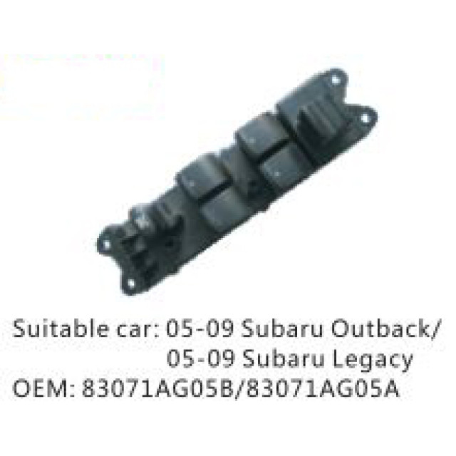 OEM: 83071AG05B/83071AG05AVEHICLE MODEL: 05-09 Subaru Outback/05-09 Subaru LegacyITEM: Window Regulator SwitchPRODUCT NUMBER: PC-0100172