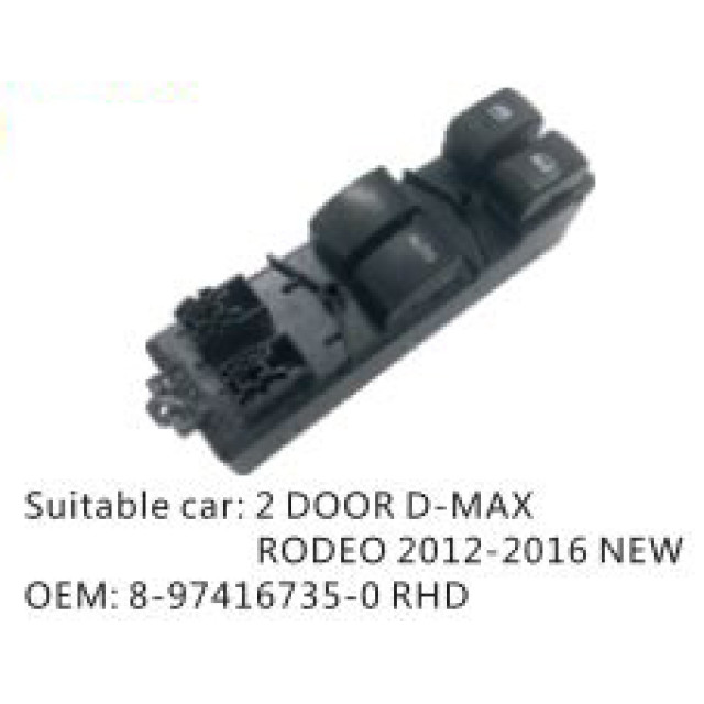 OEM: 8-97416735-0VEHICLE MODEL: 2 DOOR D- MAX RODEO 2012-2016 NEW RHDITEM: Window Regulator SwitchPRODUCT NUMBER: PC-0100461