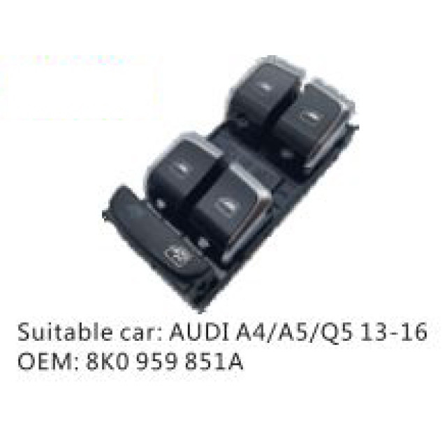 OEM: 8K0959851AVEHICLE MODEL: AUDI A4/A5/Q5 13-16ITEM: Window Regulator SwitchPRODUCT NUMBER: PC-0100576