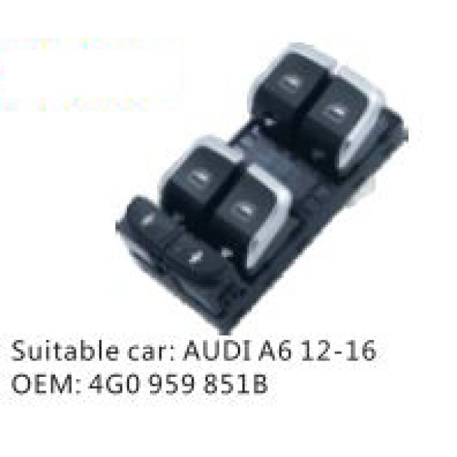 OEM: 4G0 959 851BVEHICLE MODEL: AUDI A6 12-16ITEM: Window Regulator SwitchPRODUCT NUMBER: PC-0100575