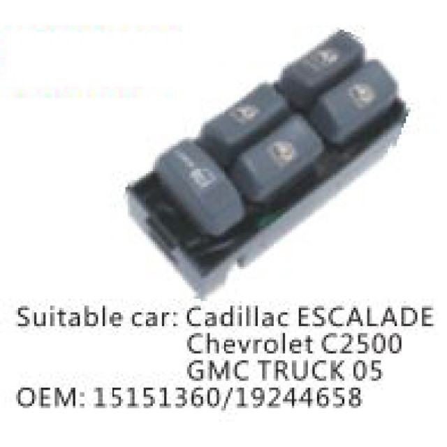 OEM: 15151360/19244658VEHICLE MODEL: Cadillac ESCAL ADE Chevrolet C2500 GMC TRUCK 05ITEM: Window Regulator SwitchPRODUCT NUMBER: PC-0100243