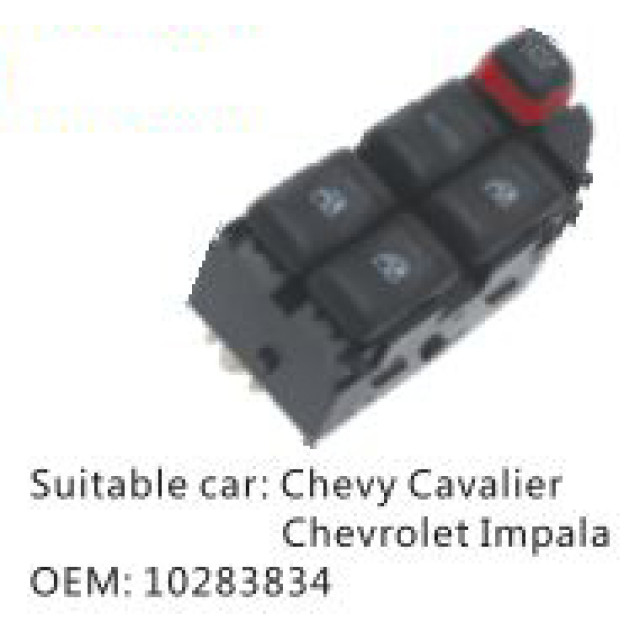 OEM: 10283834VEHICLE MODEL: Chevy Cavalier Chevrolet ImpalaITEM: Window Regulator SwitchPRODUCT NUMBER: PC-0100246