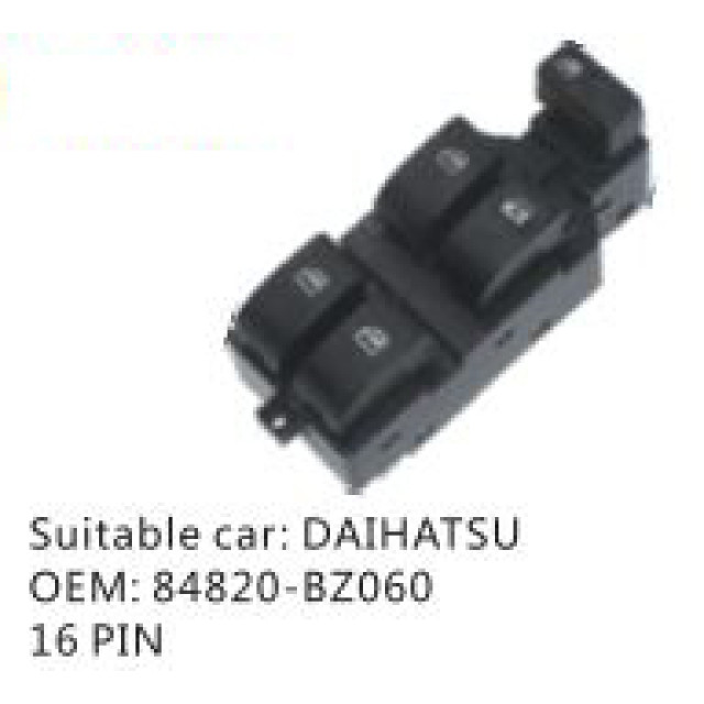 OEM: 84820-BZ060VEHICLE MODEL: DAIHATSUITEM: Window Regulator SwitchPRODUCT NUMBER: PC-0100401