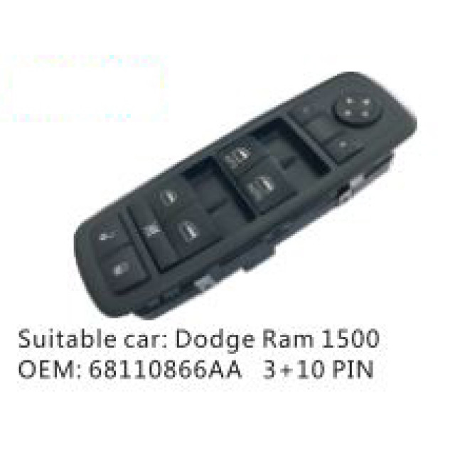 OEM: 68110866AAVEHICLE MODEL: Dodge Ram 1500ITEM: Window Regulator SwitchPIN QUANTITY: 3+10 PINPRODUCT NUMBER: PC-0100419