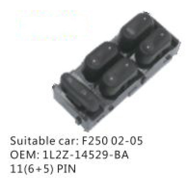 OEM: 1L2Z-14529-BAVEHICLE MODEL: F250 02-05ITEM: Window Regulator SwitchPIN QUANTITY: 11(6+5) PINPRODUCT NUMBER: PC-0100111