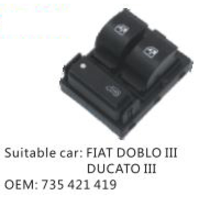 OEM: 735 421 419VEHICLE MODEL: FIAT DOBLO II DUCATO IIIITEM: Window Regulator SwitchPRODUCT NUMBER: PC-0100501