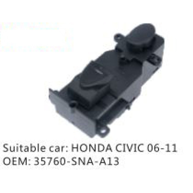 OEM: 35760-SNA-A13VEHICLE MODEL: HONDA CIVIC 06-11ITEM: Window regulator switchPRODUCT NUMBER: PC-0100046