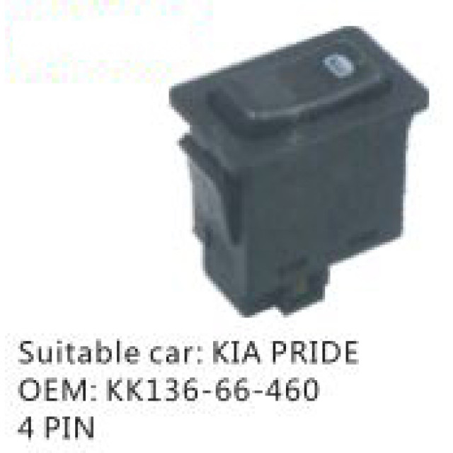 OEM: KK136-66-460VEHICLE MODEL: KIA PRIDEITEM: Window Regulator SwitchPIN QUANTITY: 4 PINPRODUCT NUMBER: PC-0100627