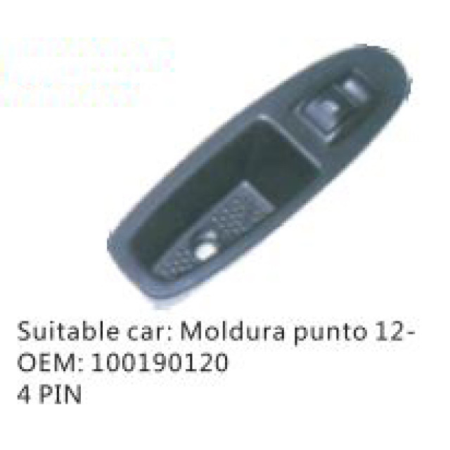 OEM: 100190120VEHICLE MODEL: Moldura punto 12-ITEM: Window Regulator SwitchPIN QUANTITY: 4 PINPRODUCT NUMBER: PC-0100512