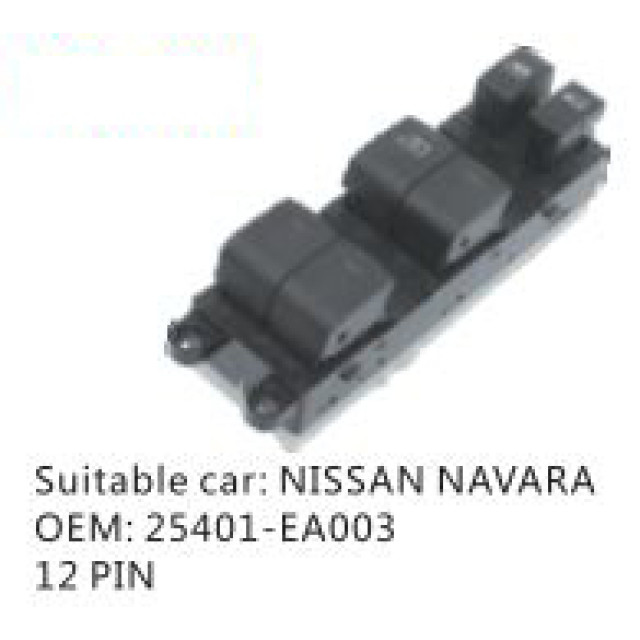 OEM: 25401- EA003VEHICLE MODEL: NISSAN NAVARAITEM: Window Regulator SwitchPIN QUANTITY: 12 PINPRODUCT NUMBER: PC-0100187