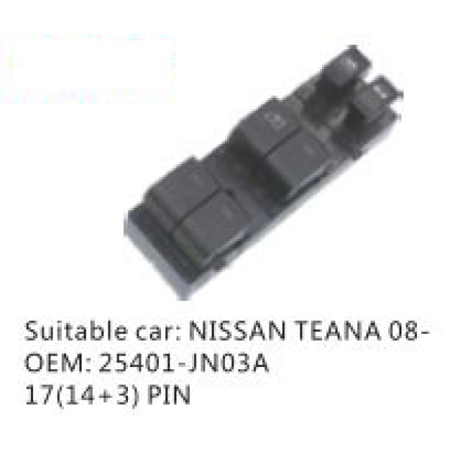 OEM: 25401-JN03AVEHICLE MODEL: NISSAN TEANA 08-ITEM: Window Regulator SwitchPIN QUANTITY: 17(14+3) PINPRODUCT NUMBER: PC-0100190