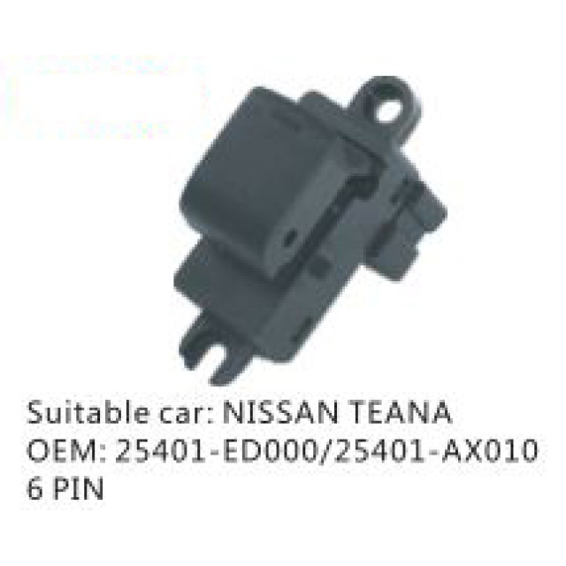 OEM: 25401- ED000/25401- AX010VEHICLE MODEL: NISSAN TEANAITEM: Window Regulator SwitchPIN QUANTITY: 6 PINPRODUCT NUMBER: PC-0100200