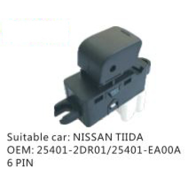 OEM: 25401- 2DR01/25401- EA00AVEHICLE MODEL: NISSAN TIIDAITEM: Window Regulator SwitchPIN QUANTITY: 6 PINPRODUCT NUMBER: PC-0100201