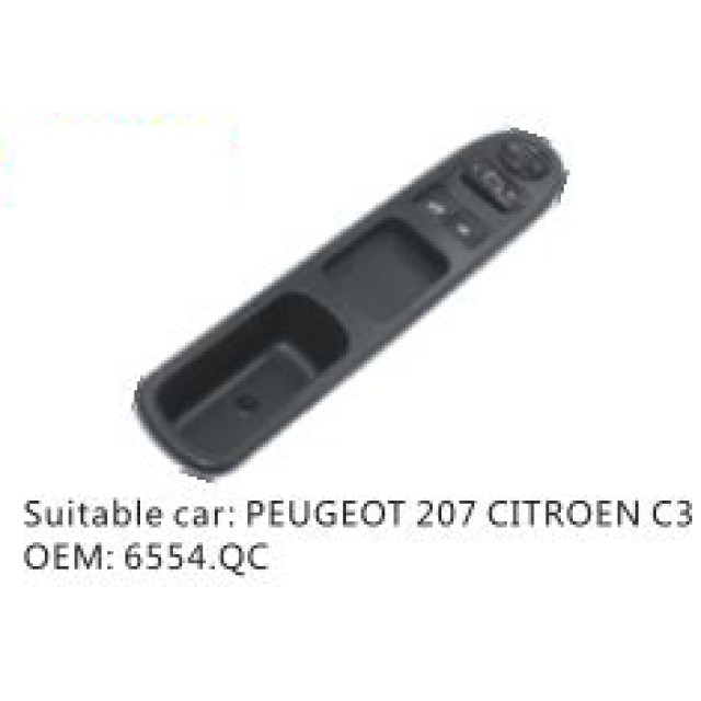 OEM: 6554.QCVEHICLE MODEL: PEUGEOT 207 CITROEN C3ITEM: Window Regulator SwitchPRODUCT NUMBER: PC-0100466