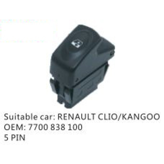 OEM: 7700 838 100VEHICLE MODEL: RENAULT CLIO/KANGOOITEM: Window Regulator SwitchPIN QUANTITY: 5 PINPRODUCT NUMBER: PC-0100521