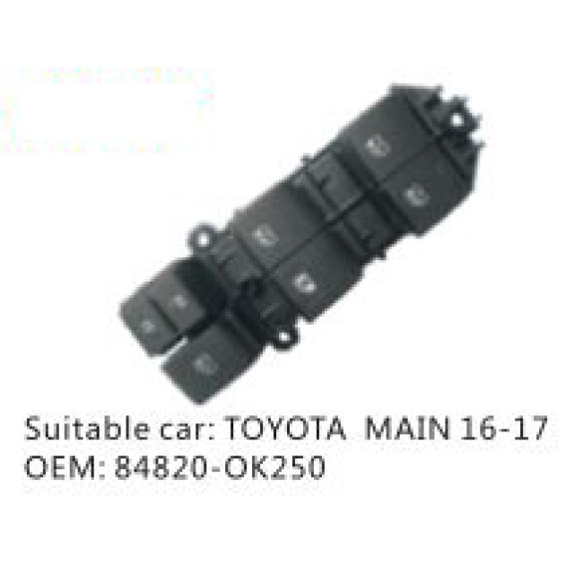 OEM: 84820-OK250VEHICLE MODEL: TOYOTA MAIN 16-17ITEM: Window Regulator SwitchPRODUCT NUMBER: PC-0100154